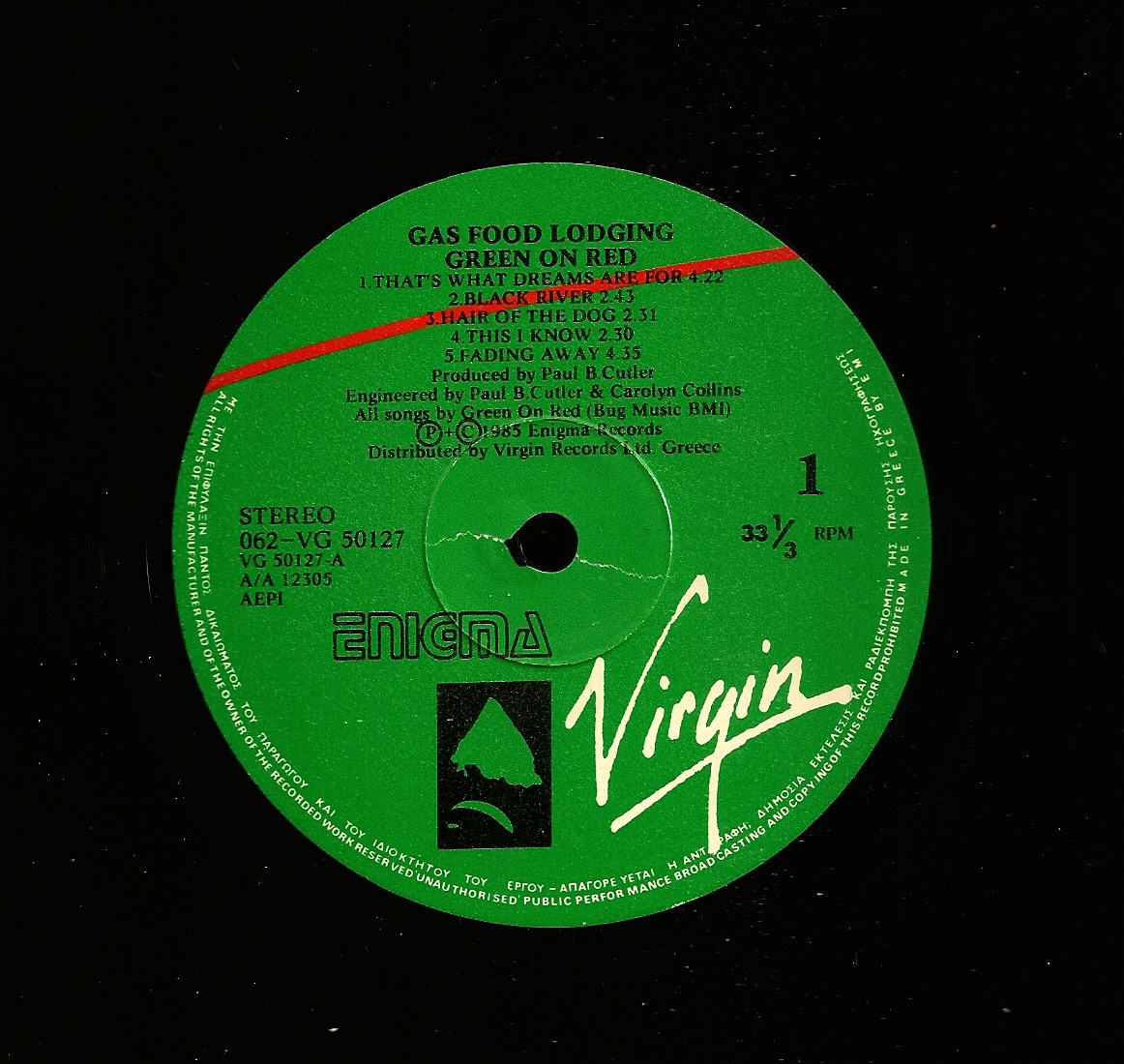 Green on red gas food lodging green vinyl lp vg plays well 1985 enigma 72005 1.